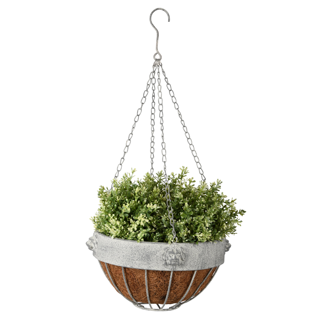 Aged Metal Lion Hanging Basket
