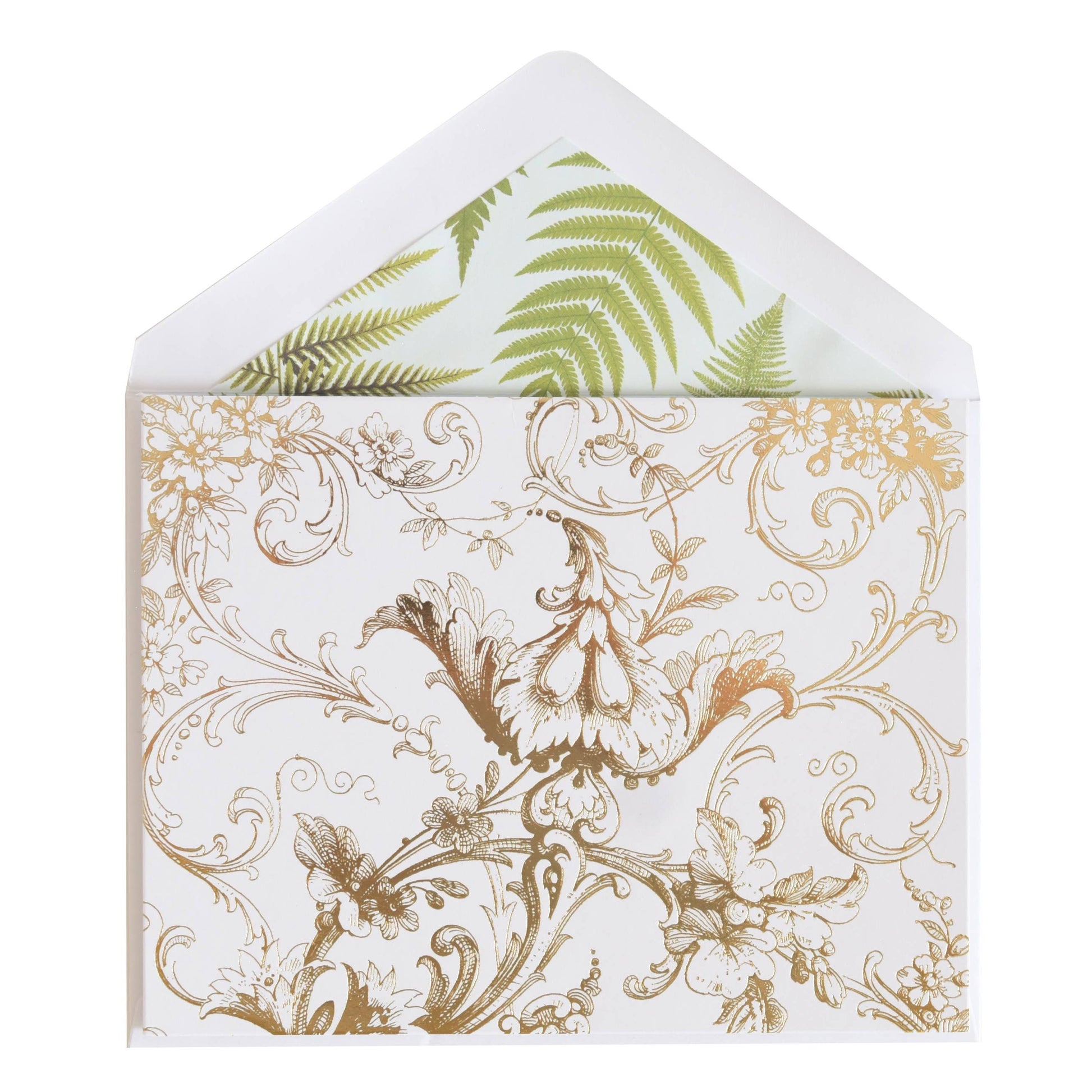 Each of the twelve folded notecards is paired with a luxurious lined envelope. The box is so pretty you'll want to use it long after the notes are gone.