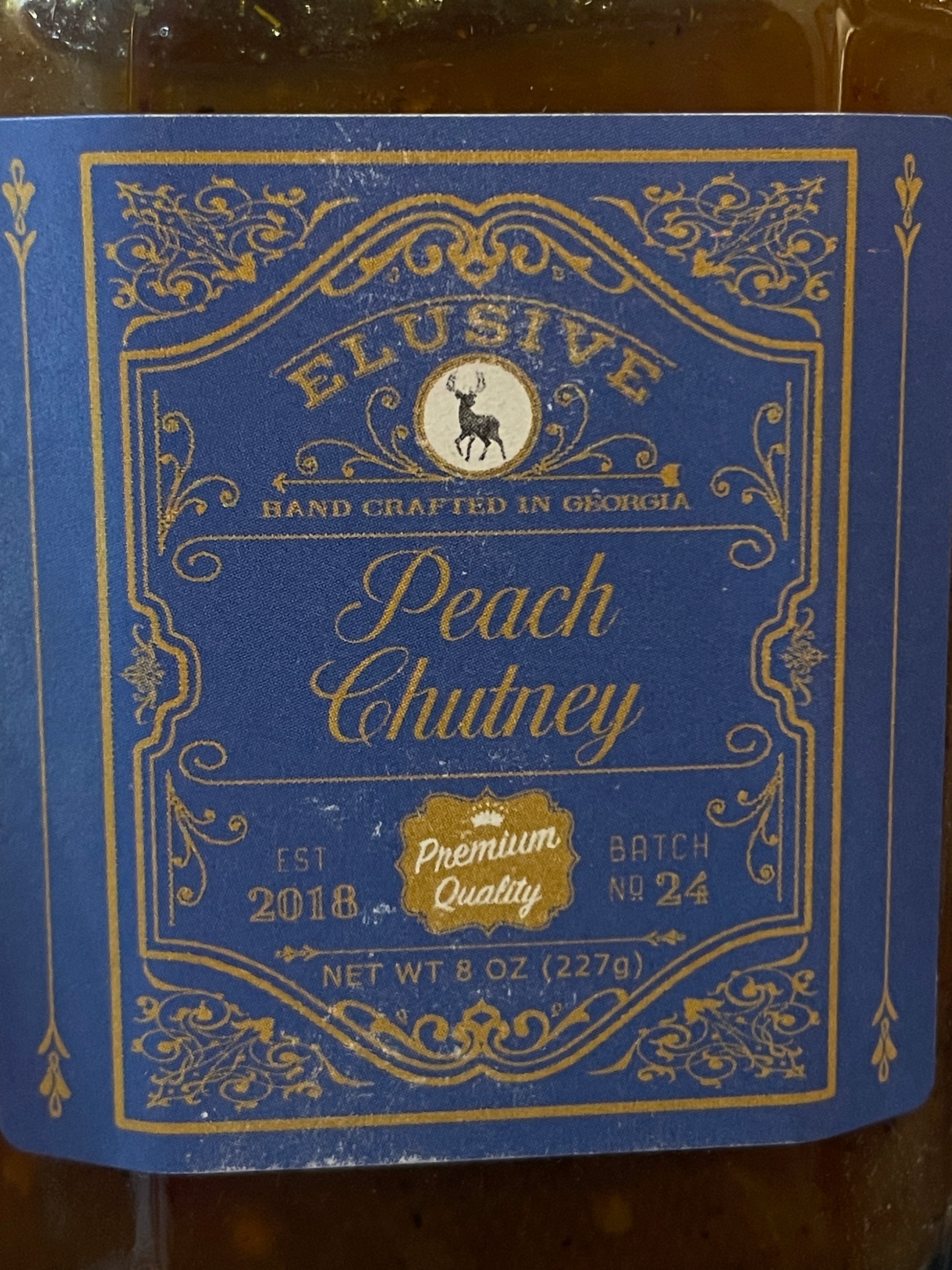 Elusive Jam's Peach Chutney is their newest offering!  Made with peaches, Vidalia onions and a ton of spices, it's fantastic on sandwiches, grilled chicken, pork chops, and shrimp.