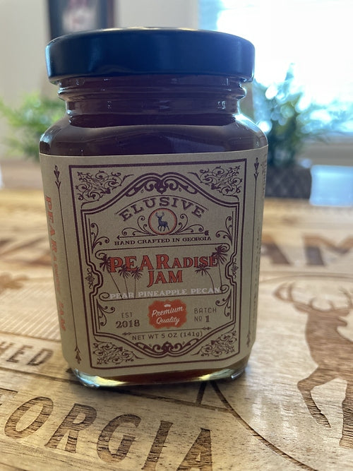 This recipe was inspired by a dessert Elusive Jam's Jason Wynn's mom makes. It was a family comfort food during quarantine, and they decided to modify it into a jam for all to enjoy. Aptly named by their youngest daughter, PEARadise, because the flavor takes you away from reality. PEARadise Jam is crafted with local Georgia pears, South Georgia pecans, and fresh pineapples. The buttery sweet flavor is excellent on everything. This is one jam you can just sit and enjoy with a spoon, but we encourage you to share.