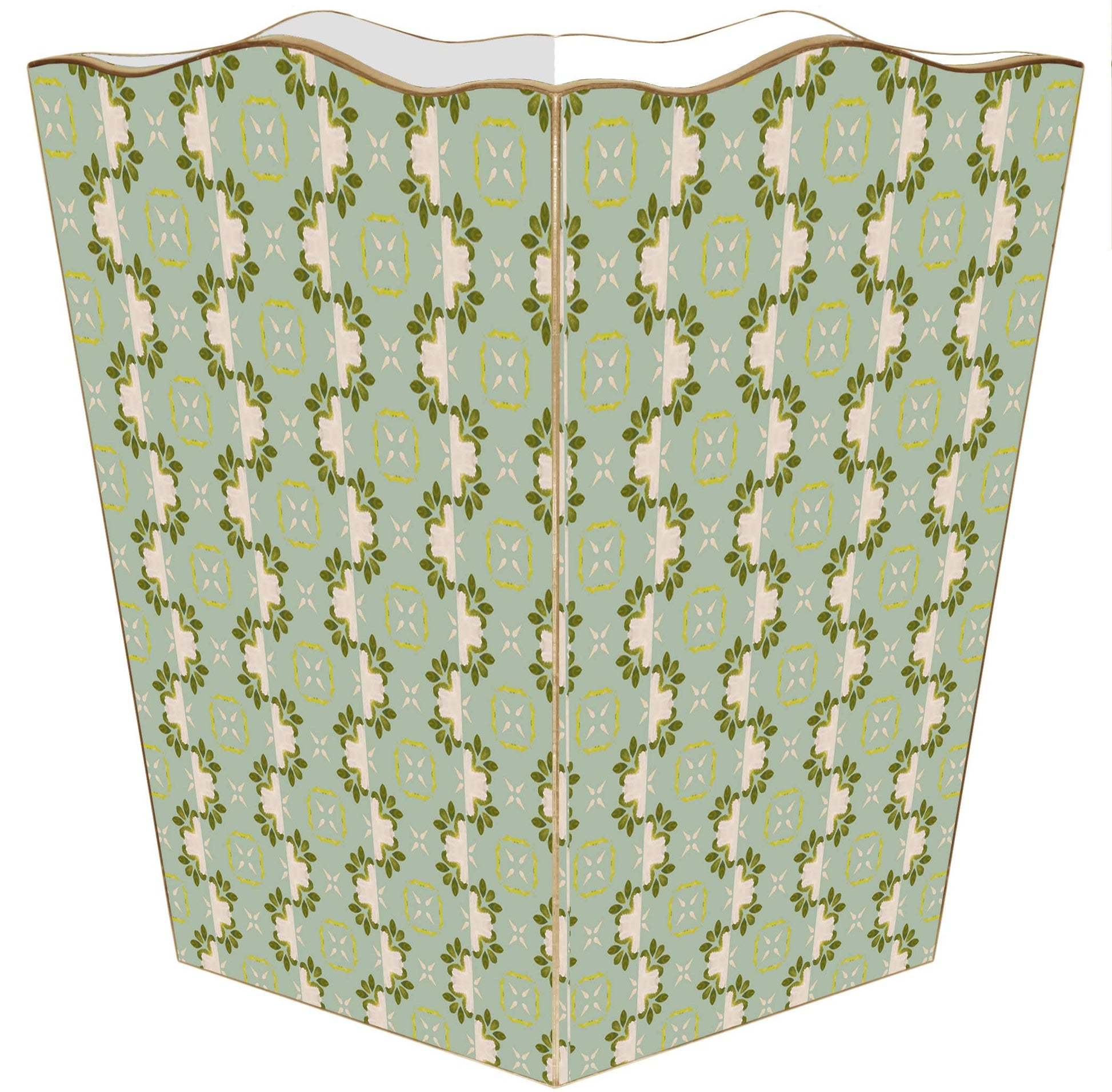 Our wastepaper baskets are handmade to order in Houston, Texas. The wastepaper basket is made of wood. The artwork is hand-cut, decoupaged, and polished, and then carefully painted gold or silver around the edges as the perfect finishing touch.