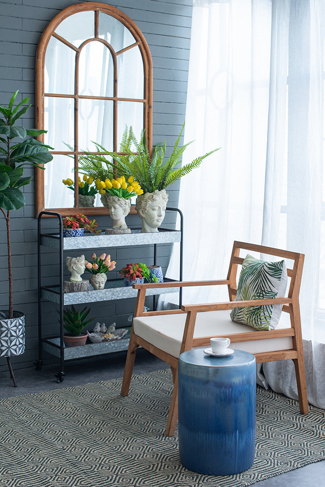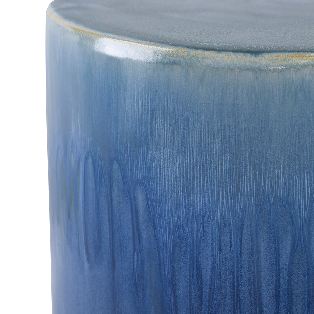 Features stunning gradient effect. Its blue tone gives off a fresh and breezy feel. This Round Reactive Glazed Stool adds style and function to your home.