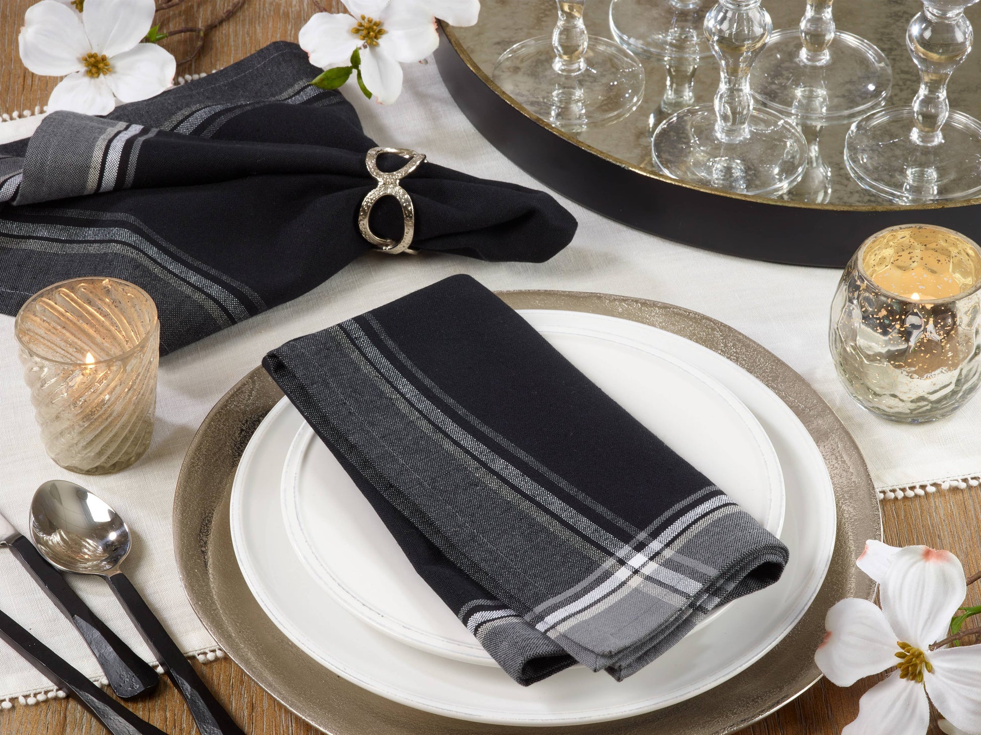Have you ever seen napkins look so breathtaking? That’s what you get with these elegant beauties. These dinner napkins are a real class act. They represent fine dining without the high cost. Made from 100% cotton, these square-shaped, striped border fabric napkins add character to your table.